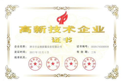 2017年12月1日,我司正式被認(rèn)定為高新技術(shù)企業(yè),肯定了我司在豬鬃行業(yè)內(nèi)的開拓與創(chuàng)新。今后,我司將再接再厲,把更多的高新技術(shù)引入到豬鬃生產(chǎn)各環(huán)節(jié),爭(zhēng)取更加穩(wěn)定的質(zhì)量和更加高效的生產(chǎn)。